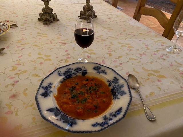 Here’s yet another warm-weather soup, especially well suited to this late-summer weather, and inspired by the selection of beans available from Rancho Gordo’s ‘Bean of the Month Club’. Here Barbara uses the Royal Corona beans to make a milder, even more delicate soup that seems to be especially well matched with the 2023 Pinot Noir ‘Placida Vineyard’ from Chuy Ordaz.